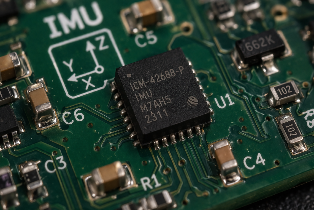 The accelerometer measures accelerations, vibrations, inclinations, and impacts. It is therefore used both in machinery monitoring and in wearables, sports, health, and human movement analysis. It is one of the most versatile sensors for projects that need to understand dynamic changes.