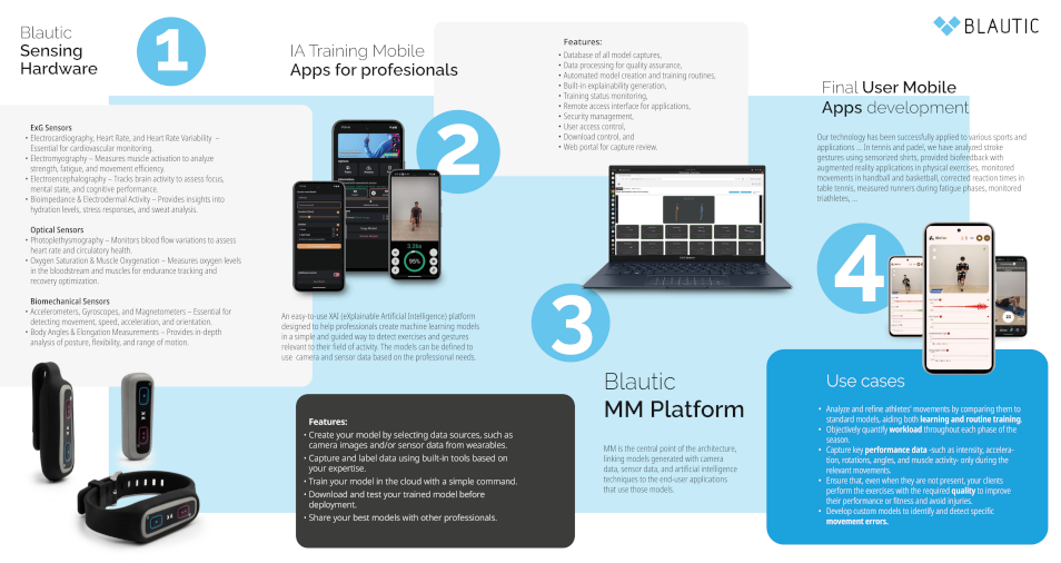 The MM platform by Blautic enables experts to leverage Artificial Intelligence, transforming complex data into useful and explainable real-time insights, thereby driving innovative solutions in the healthcare and sports sectors.